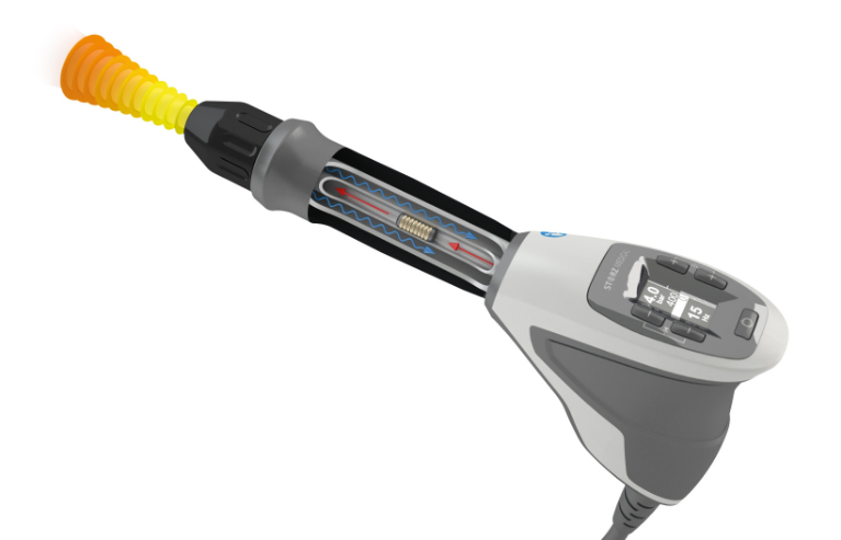 衝撃波を患部に照射することで、難治性の足底腱膜炎のほか、筋や腱での慢性疼痛の改善に効果を発揮する治療器です。当院では、収束型・拡散型の2種類の体外衝撃波を使い分けます。